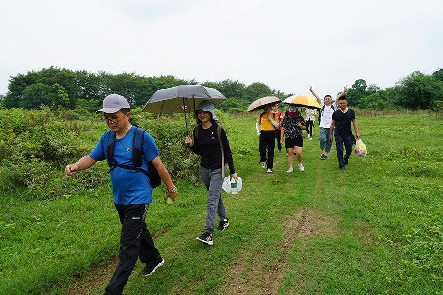 大雨過后,烈日當(dāng)空,地表溫度迅速上升,空氣中的水蒸氣增多,汗液難于蒸發(fā),面對濕熱天氣,大家義無反顧的前進(jìn),衣服濕了又干,干了又濕。中午14點,隊伍進(jìn)入一片樹林,起初地勢較為平坦、道路開闊……漸漸地,地面開始凹凸不平,有了越來越多的水坑,道路開始變窄,一條小溪攔住了隊伍。大家紛紛脫鞋下水,手拉著手、攙扶著后面的同志在溪水中行進(jìn),本著不能讓任何一個同志掉隊的信念,整個團(tuán)隊相互鼓勁、相互扶持,克服困難,攜手踏過這段溪流。
