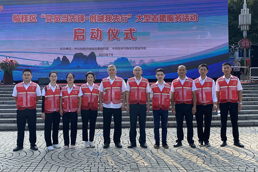7月14日,新城投資集團黨總支組織第一支部、第二支部黨員志愿者趙建斌、粟大鳴、蒙妙云、謝籍浩、袁靜、唐緣蒙、徐新輝、侯麗麗、鄧映洲、龍海東十位同志參加了由臨桂區(qū)委組織部、宣傳部在臨桂區(qū)金山廣場主辦的“黨員當先鋒,創(chuàng)城我先行”大型志愿服務活動啟動儀式。區(qū)委副書記王鳳玲現(xiàn)場致辭,拉開了志愿服務活動啟動儀式帷幕,為桂林市創(chuàng)建全國文明城市助力。