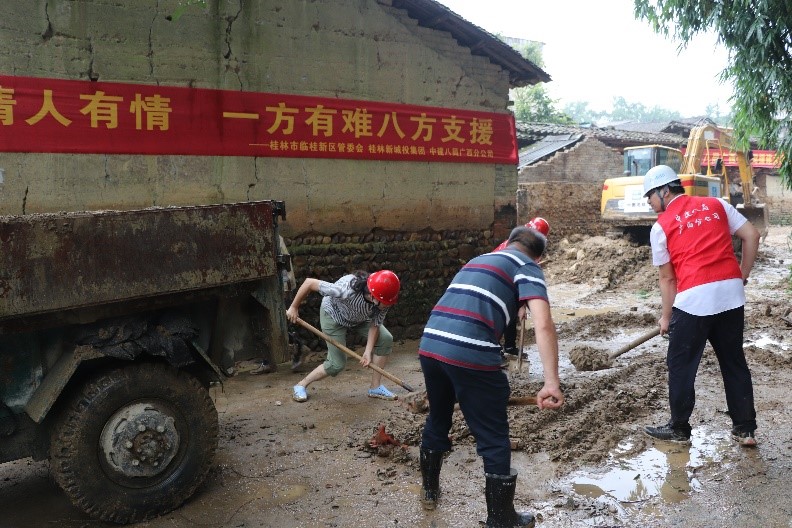 近期,臨桂新區(qū)鄉(xiāng)村振興聯(lián)系點五通鎮(zhèn)羅江村連續(xù)遭遇多輪強(qiáng)降雨侵襲,鄉(xiāng)村路面房屋受災(zāi)嚴(yán)重,村落存在大量積水和淤泥。面對災(zāi)情,臨桂新區(qū)黨工委委員、管委會常務(wù)副主任李星明,新區(qū)黨工委委員、管委會副主任、機(jī)關(guān)黨委書記蔣玖明了解情況后,急群眾所急、想群眾所想,立即把這項艱巨任務(wù)交給了新城投集團(tuán)黨總支,建議由會展中心項目部臨時聯(lián)合黨支部作為實施主體。新城投集團(tuán)黨總支副書記、總經(jīng)理黃峻按照部署立刻布置相關(guān)工作,安排集團(tuán)黨總支組織委員、工會主席、聯(lián)合黨支部副書記譚力源組織聯(lián)合黨支部成員單位——中建八局廣西公司桂林項目部具體緊急落實,要求發(fā)揮央企技術(shù)優(yōu)勢和國企平臺資源,為鄉(xiāng)村災(zāi)后重建做好服務(wù)保障、力所能及的為村民解憂,以此提升“黨旗映勝地”黨建品牌的時代內(nèi)涵。