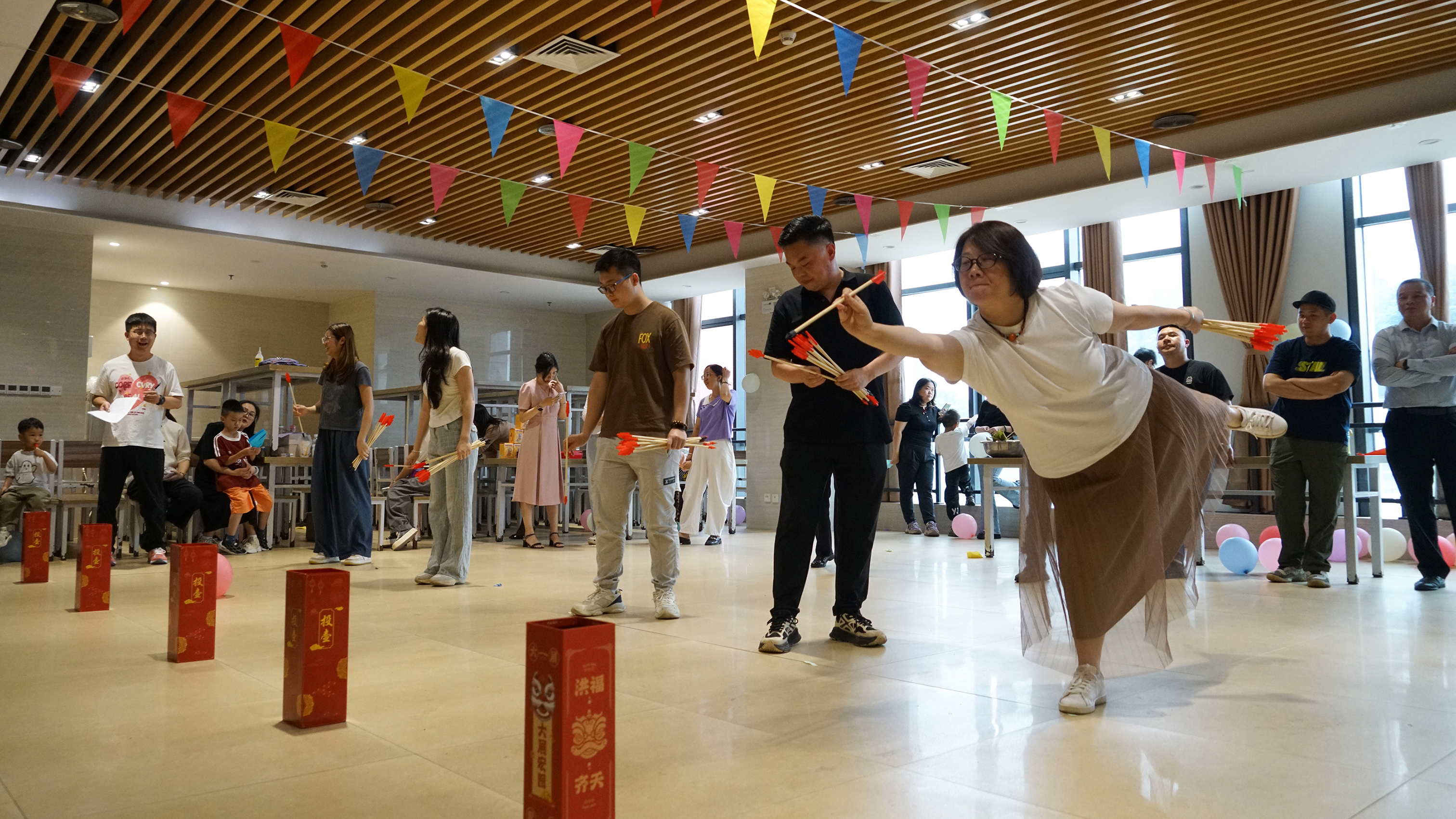 “家企同行·國風非遺——民族文創(chuàng),與‘粽’不‘童’”趣味游戲挑戰(zhàn)環(huán)節(jié),將活動氛圍推向高潮。童年紙飛機、端午射五毒、趣味投壺三大趣味游戲讓職工與孩子都沉浸其中。在童年紙飛機游戲中,為了能讓紙飛機飛得更遠、更久,大家興致勃勃地嘗試著各種折法,隨后用力一擲,紙飛機在空中劃出一道道優(yōu)美的弧線,有的飛得又高又遠,有的則在空中翻轉幾圈后穩(wěn)穩(wěn)落地,看著自己折的紙飛機歡呼雀躍,仿佛回到了無憂無慮的童年時光。端午射五毒游戲則充滿了傳統(tǒng)韻味,大家手持飛鏢,瞄準靶心,每當有人射中五毒圖案,周圍就會響起一陣歡呼聲,大家在歡聲笑語中感受著端午節(jié)的傳統(tǒng)習俗。趣味投壺游戲更是熱鬧非凡,參與者們瞄準壺口,或站或蹲,調(diào)整著姿勢和力度,隨著一次次投中,現(xiàn)場的氣氛也一次次被點燃,歡呼聲、加油聲此起彼伏。歡聲笑語回蕩在整個活動現(xiàn)場。各組成員在比賽中相互配合、相互鼓勵,展現(xiàn)了團隊合作的力量。最終,根據(jù)各組獲得的總分,評選出冠軍組,大家在歡樂中感受到了團隊的溫暖與力量。