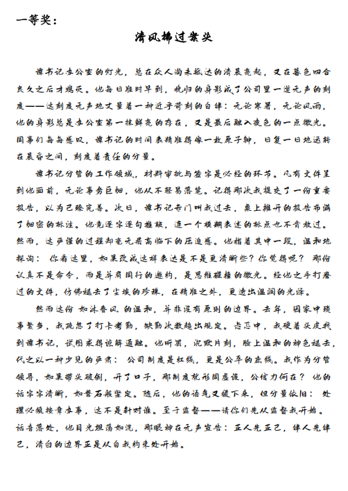 為確保比賽的專業(yè)性與公正性,集團(tuán)黨委聯(lián)合第三黨支部委員及群眾代表組成評(píng)審小組,從主題性、感染力、文字表達(dá)、創(chuàng)新性四個(gè)維度對(duì)作品進(jìn)行綜合評(píng)分。經(jīng)過層層篩選,最終評(píng)選出一等獎(jiǎng)2名、二等獎(jiǎng)1名、三等獎(jiǎng)3名、優(yōu)秀獎(jiǎng)5名。獲獎(jiǎng)作品既有對(duì)黨員先進(jìn)事跡的深度刻畫,也有對(duì)黨性精神的深刻詮釋,充分反映了參賽者的真情實(shí)感與創(chuàng)作水平。
