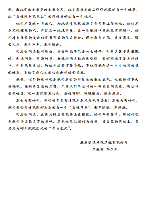 本次征文比賽不僅挖掘了一批真實(shí)動(dòng)人的黨員故事,更成為支部黨員學(xué)習(xí)先進(jìn)、對(duì)標(biāo)榜樣、凝聚共識(shí)的重要載體。通過“講身邊事、學(xué)身邊人”,黨員們進(jìn)一步深化了對(duì)黨的二十大精神的理解,激發(fā)了立足崗位、爭(zhēng)先創(chuàng)優(yōu)的熱情。獲獎(jiǎng)作品《黨旗映勝地,奉獻(xiàn)筑華章》《清風(fēng)拂過案頭》《黨旗作帆破浪行——桂林學(xué)院工地的紅色堡壘》等,以細(xì)膩筆觸描繪了黨員在不同領(lǐng)域的堅(jiān)守與奉獻(xiàn),成為支部?jī)?nèi)互學(xué)互鑒的鮮活教材。