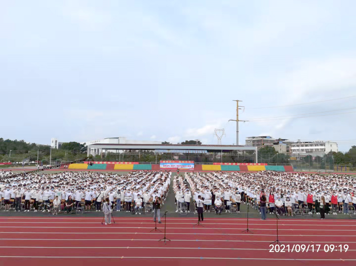 9月17日上午,桂林學(xué)院2021級新生開學(xué)典禮在學(xué)校田徑場舉行。2021級來自全國各地的3160名新生和新生親友通過現(xiàn)場與視頻直播相結(jié)合的形式,共同參加和觀看了開學(xué)典禮。桂林學(xué)院董事長周道林,桂林學(xué)院校長楊樹喆以及學(xué)校董事、監(jiān)事、校領(lǐng)導(dǎo)出席典禮。各二級學(xué)院、職能教輔部門主要負(fù)責(zé)人,各黨總支書記、副書記,全體新生輔導(dǎo)員,教師代表,校友代表參加典禮。開學(xué)典禮由校黨委書記唐文紅主持。
