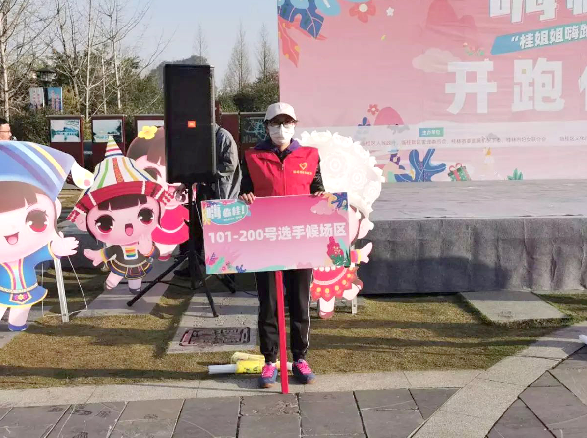 積極分子、共青團員參加“嗨?臨桂!”——“女神酷跑”活動志愿服務。