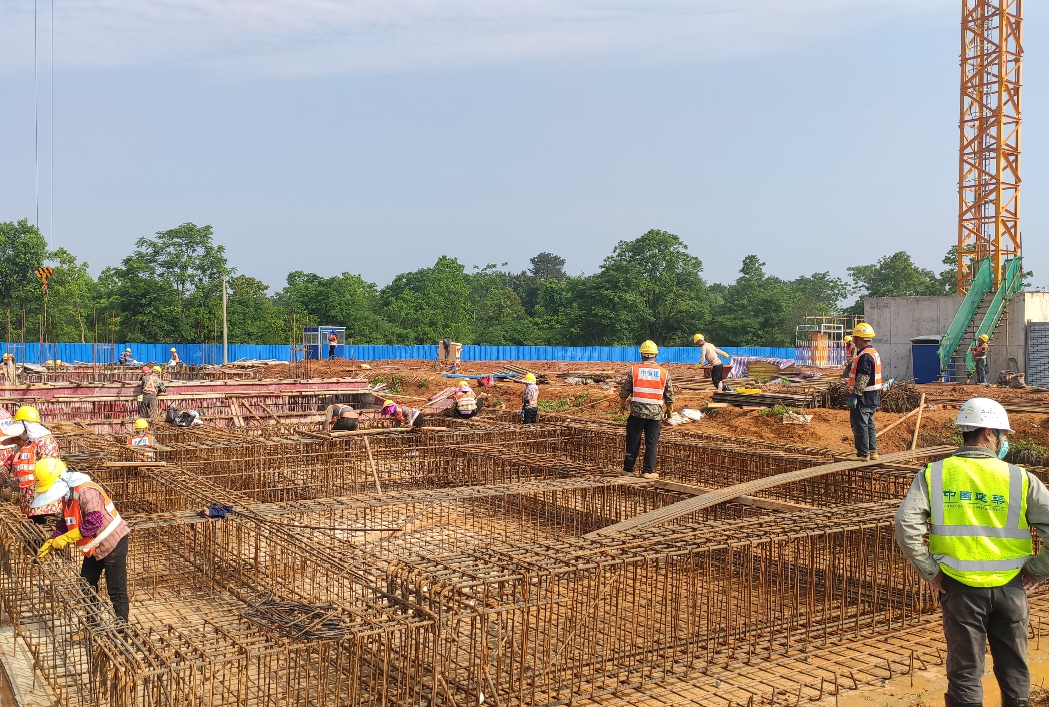 桂林學(xué)院7棟學(xué)生宿舍項(xiàng)目時(shí)間緊任務(wù)重,項(xiàng)目要在開(kāi)學(xué)前交付使用,建設(shè)期間又逢“桂林的端午雨季”,為更好地發(fā)揮黨組織在項(xiàng)目上的促進(jìn)作用,集團(tuán)黨總支與項(xiàng)目參建單位共同組建了臨時(shí)聯(lián)合黨支部,以黨建為引領(lǐng),做到“項(xiàng)目建在哪里,黨旗就飄揚(yáng)在哪里,黨組織戰(zhàn)斗堡壘作用就發(fā)揮到哪里”,黨支部戰(zhàn)斗堡壘和黨員先鋒模范作用得到充分發(fā)揮。2022年4月項(xiàng)目全方位施工,“5.1”假期現(xiàn)場(chǎng)作業(yè)“不打烊”,現(xiàn)場(chǎng)施工人員每日兩班日夜兼程施工,工程全面推進(jìn),確保按時(shí)按質(zhì)按量完成各施工節(jié)點(diǎn)建設(shè)任務(wù)。目前,基礎(chǔ)工程已完成80%,基礎(chǔ)土方回填工程量大,受雨季天氣影響較大,事關(guān)上部結(jié)構(gòu)施工節(jié)點(diǎn),項(xiàng)目團(tuán)隊(duì)緊跟基礎(chǔ)工程的腳步開(kāi)始土方回填工作,嚴(yán)保工期。