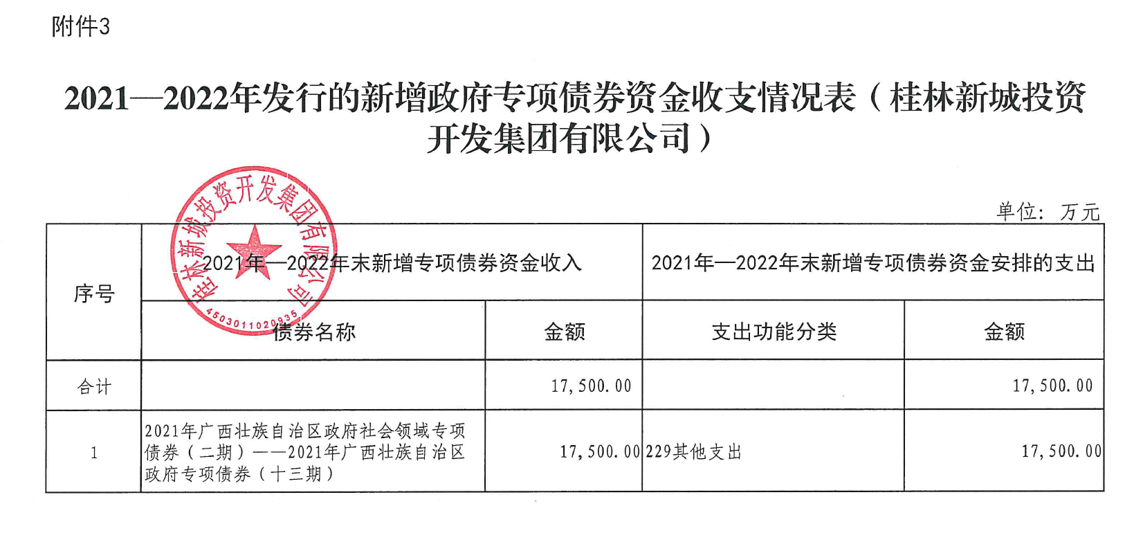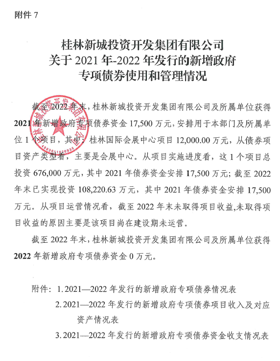 桂林新城投資開發(fā)集團有限公司關于2021年-2022年發(fā)行的新增政府專項債券使用和管理情況