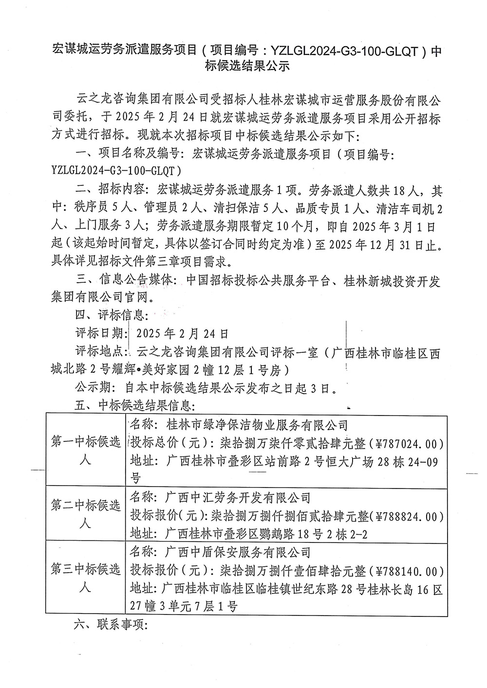 宏謀城運(yùn)勞務(wù)派遣服務(wù)項(xiàng)目(項(xiàng)目編號:YZLGL2024-G3-100-GLQT)中標(biāo)候選結(jié)果公示
